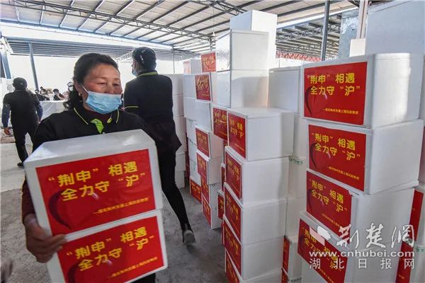 “大家加把勁,再把這箱物資抬上來。”4月7日下午3時,荊州室外溫度接近30度,太陽曬得人臉發(fā)紅,在江陵縣“荊裕優(yōu)選”現(xiàn)場,百余名工作人員忙個不停,為確保物資的新鮮和質(zhì)量,他們認(rèn)真地將每一件物資進行分類打包。