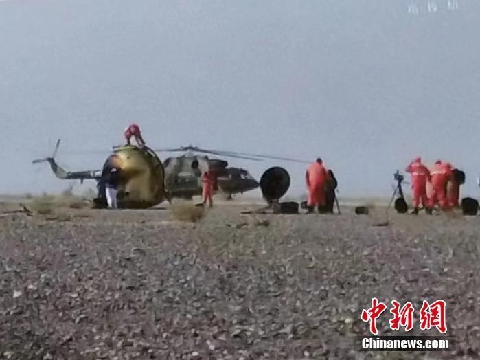 4月16日,神舟十三號(hào)載人飛船返回艙在東風(fēng)著陸場(chǎng)預(yù)定區(qū)域成功著陸。 中新社發(fā) 張杰 攝
