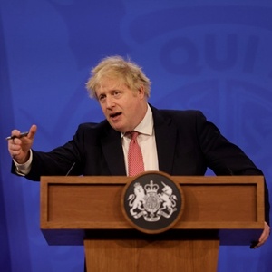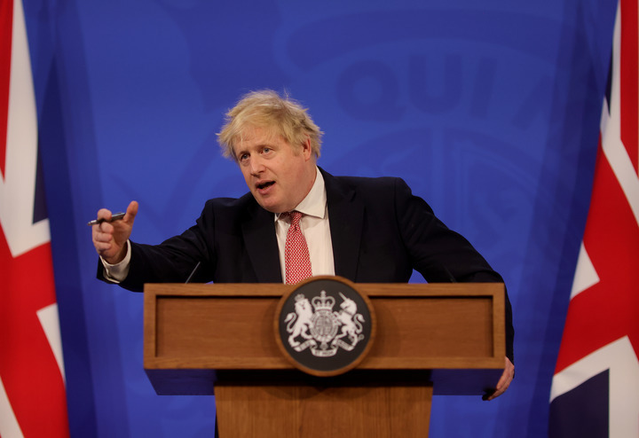 2月21日,在英國倫敦,英國首相約翰遜在新聞發(fā)布會(huì)上講話。新華社發(fā)(英國首相府供圖)