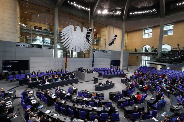 這是4月6日在德國首都柏林拍攝的德國聯(lián)邦議會(huì)會(huì)議現(xiàn)場。新華社記者單宇琦攝