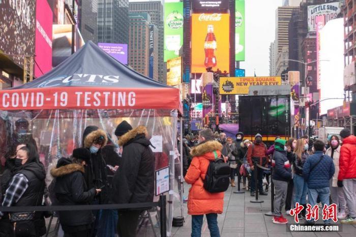 資料圖:美國紐約,民眾在時報廣場的一處新冠病毒檢測點排隊檢測。 中新社記者 王帆 攝