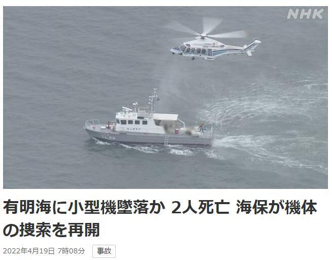 海上保安部門在當(dāng)?shù)貢r間18日下午3時40分許接到報警稱“一架飛機從雷達(dá)上消失”,隨后,該部門派出巡邏艇和巡邏機出海搜尋,后在離當(dāng)?shù)匾惶幐劭?0公里的海上發(fā)現(xiàn)了3名男子,其中2名80多歲的男子已經(jīng)死亡。