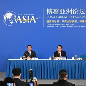 圖為博鰲亞洲論壇2022年年會(huì)新聞發(fā)布會(huì)現(xiàn)場(chǎng)(4月20日攝)。新華社記者郭程 攝