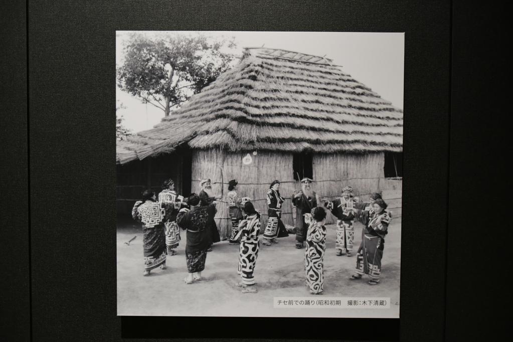 這是4月12日在北海道南部的“民族共生象征空間”拍攝的展示圖片,圖中顯示的是拍攝于昭和初期的阿伊努人群舞。(新華社記者華義攝)