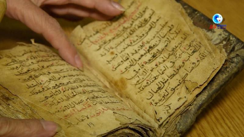 在敘利亞大馬士革老城的一間工作室里,古籍修復師拉賈·拉杰哈在發(fā)光的桌板前專注地修復一張破損的古籍紙張。
