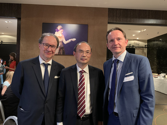 曹忠明與德威特、塞弗在活動現(xiàn)場。中國駐比利時大使館供圖。 |