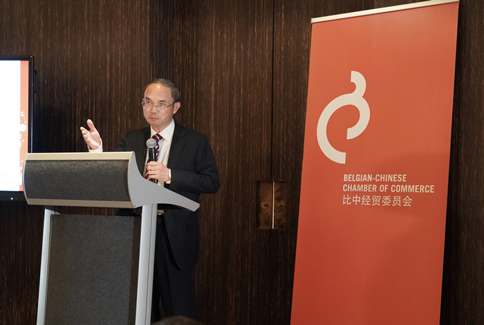中國駐比利時大使曹忠明發(fā)表致辭。中國駐比利時大使館供圖。 |