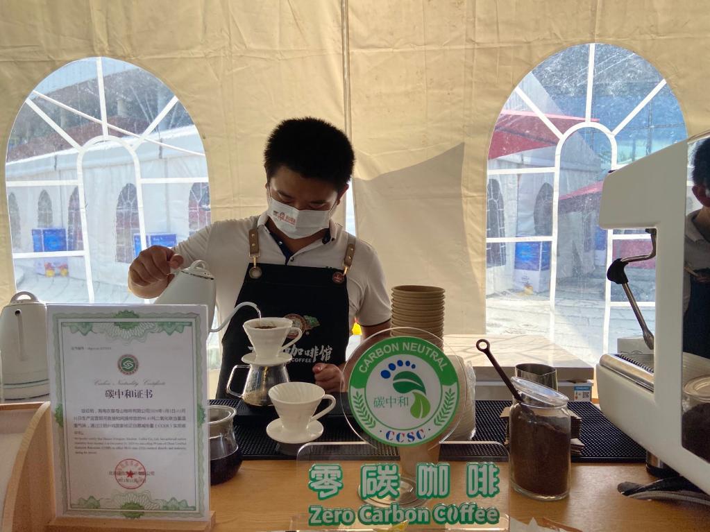 4月21日,供應(yīng)商工作人員在博鰲亞洲論壇年會(huì)新聞中心制作“零碳咖啡”。新華社記者 陳子薇 攝