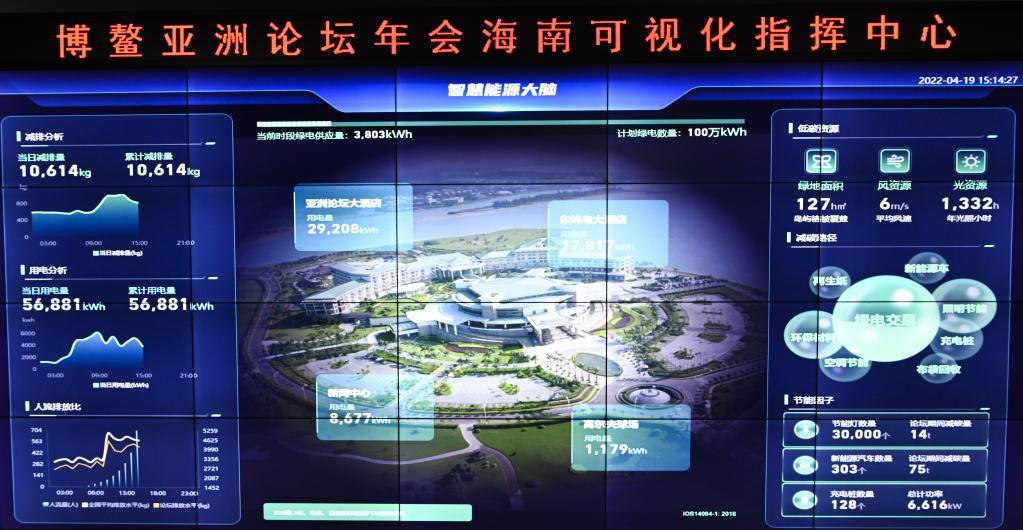 4月19日,博鰲亞洲論壇年會(huì)海南可視化指揮中心設(shè)立專門的數(shù)字化綠色低碳模塊。新華社記者 楊冠宇 攝