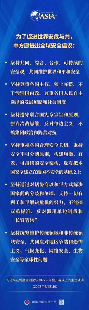 去年9月,面對疫情給全球發(fā)展帶來的嚴(yán)重沖擊,習(xí)近平主席在第七十六屆聯(lián)合國大會上提出全球發(fā)展倡議;此時此刻,面對新的形勢,習(xí)近平主席又在博鰲亞洲論壇2022年年會上提出全球安全倡議。
