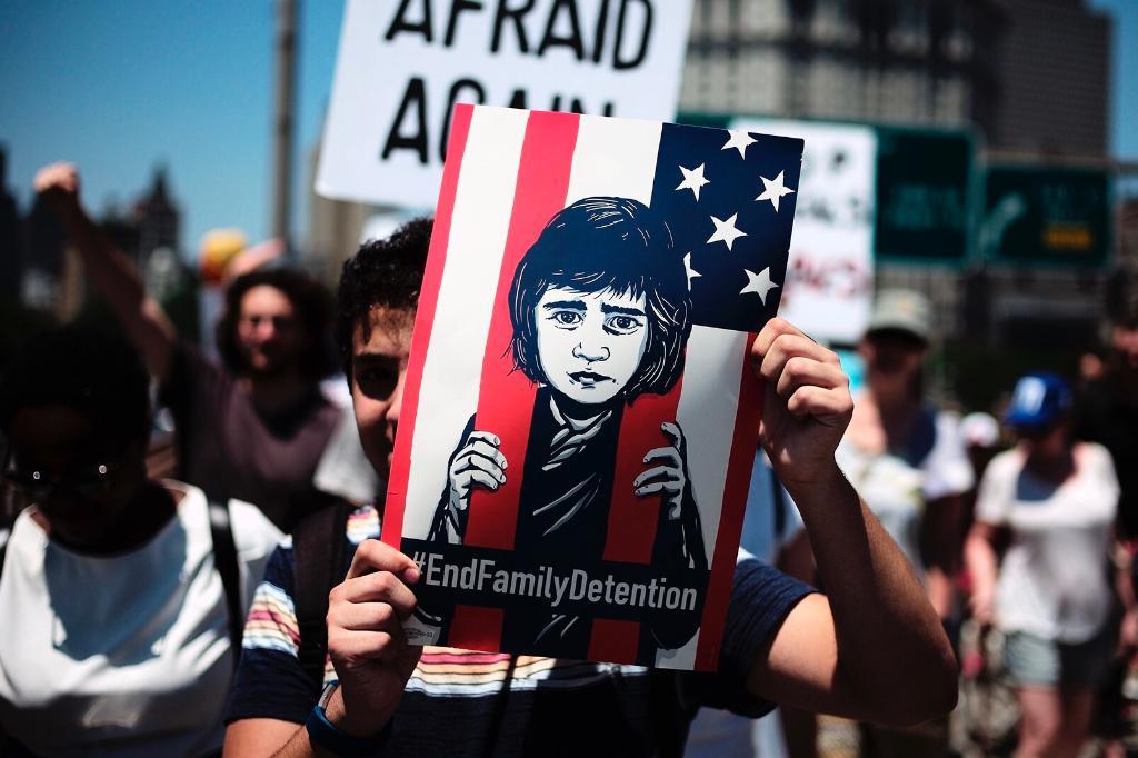 2018年6月30日,人們在美國紐約參加反對移民執(zhí)法政策游行。當(dāng)日,美國多地舉行集會游行,抗議美國政府的移民執(zhí)法政策。(新華社記者李木子攝)