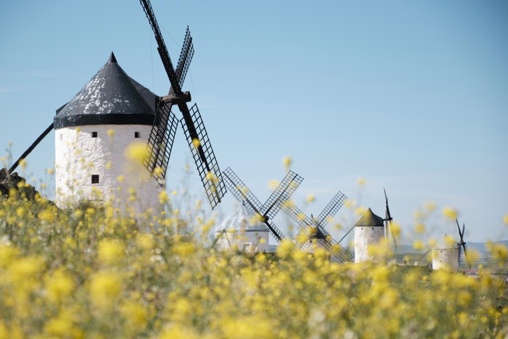 這是4月16日在西班牙孔蘇埃格拉拍攝的風車。新華社記者孟鼎博攝