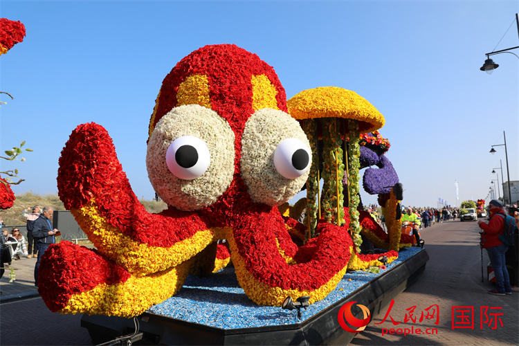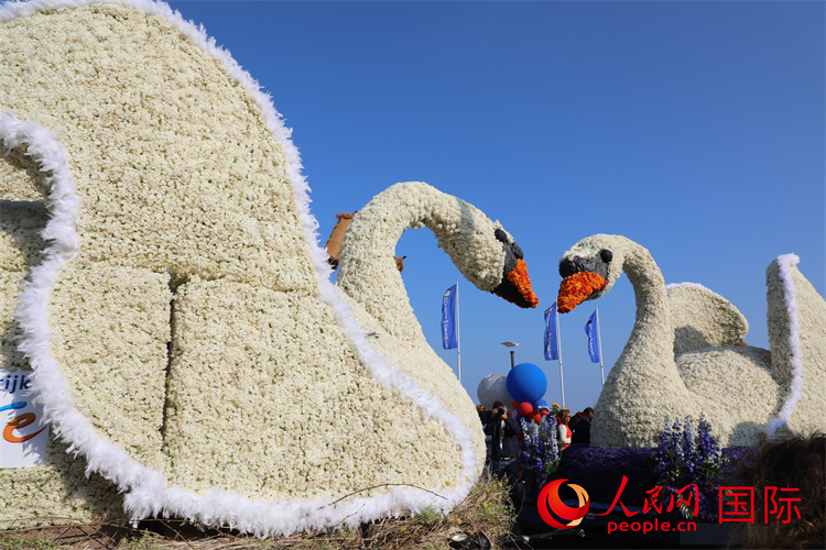 荷蘭花車巡游活動(dòng)中造型各異的花車。人民網(wǎng)記者 張朋輝攝 |