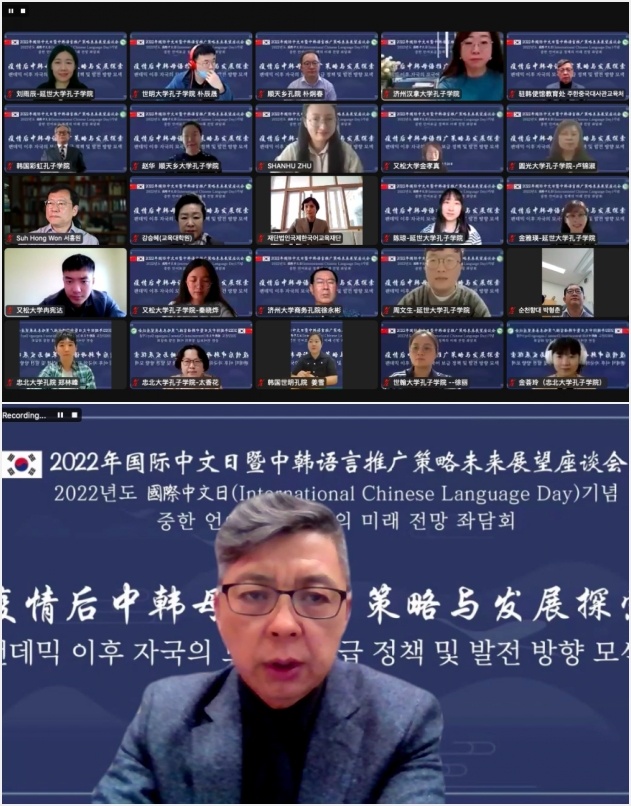 4月24日,由中國(guó)駐韓國(guó)大使館教育處與韓國(guó)孔子學(xué)院聯(lián)席會(huì)共同主辦的“2022年國(guó)際中文日暨中韓語(yǔ)言推廣策略未來(lái)展望座談會(huì)”以視頻會(huì)議方式召開(kāi)。圖片由中國(guó)駐韓國(guó)大使館教育處提供。
