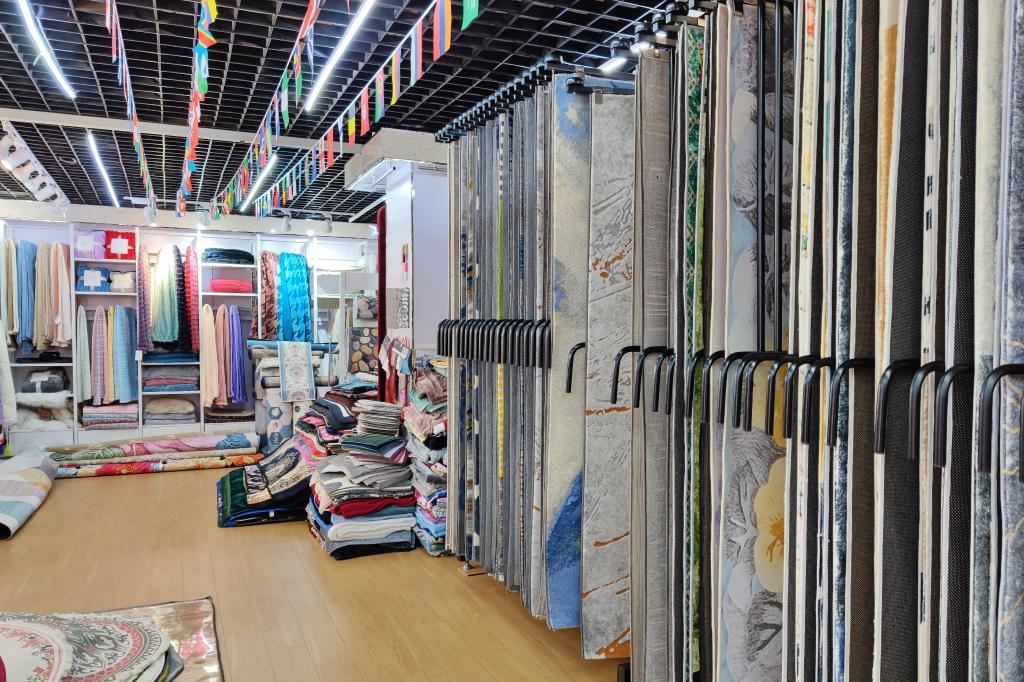 慧港家紡商鋪內(nèi)的樣品按照各個市場偏好分門別類展示。新華社記者林光耀 攝