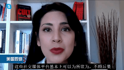 ▲ 2021年2月,美國(guó)邁阿密法學(xué)院教授弗蘭克斯在節(jié)目中表示,社交媒體平臺(tái)可以為了增加用戶參與度和盈利為所欲為,而不用考慮法律責(zé)任和可能帶來(lái)的負(fù)面后果,這種無(wú)節(jié)制的豁免權(quán)需要得到改變。