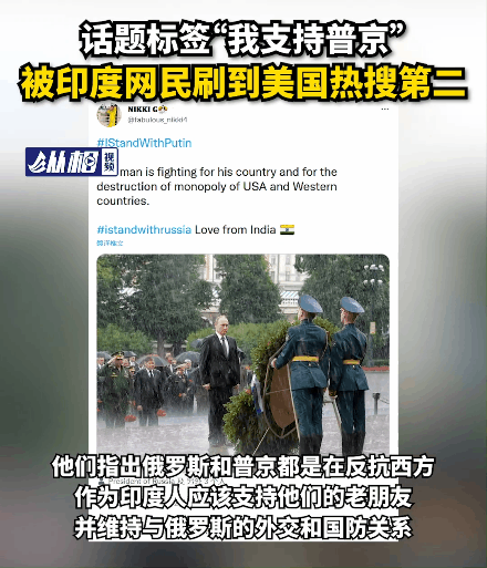 ▲ 2022年3月3日,印度推特用戶打出的“我支持普京”等tag登上了12個(gè)國(guó)家及地區(qū)的推特?zé)衢T趨勢(shì),其中全球榜為第25名,印度榜第1名。