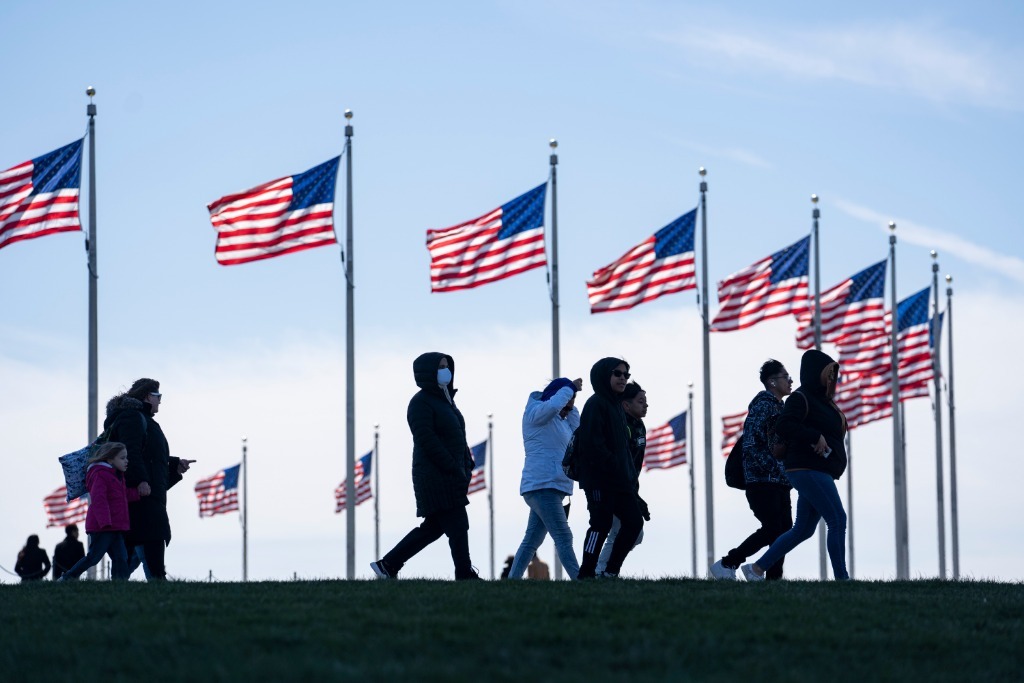 這是3月29日,行人走在美國首都華盛頓的國家廣場。新華社記者劉杰攝