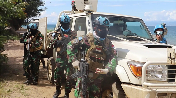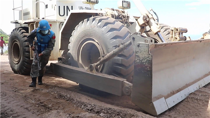 據(jù)了解,我維和工兵分隊于今年2月中旬在巴拉卡地區(qū)部署了人員裝備,對該地區(qū)96公里的道路進(jìn)行搶修。因這支任務(wù)分隊人數(shù)較少,主要擔(dān)負(fù)該地區(qū)繁重的工程任務(wù),為了能夠安全順利進(jìn)行施工作業(yè),聯(lián)剛穩(wěn)定團(tuán)派遣印度尼西亞維和快反營擔(dān)負(fù)警戒防衛(wèi)任務(wù)。