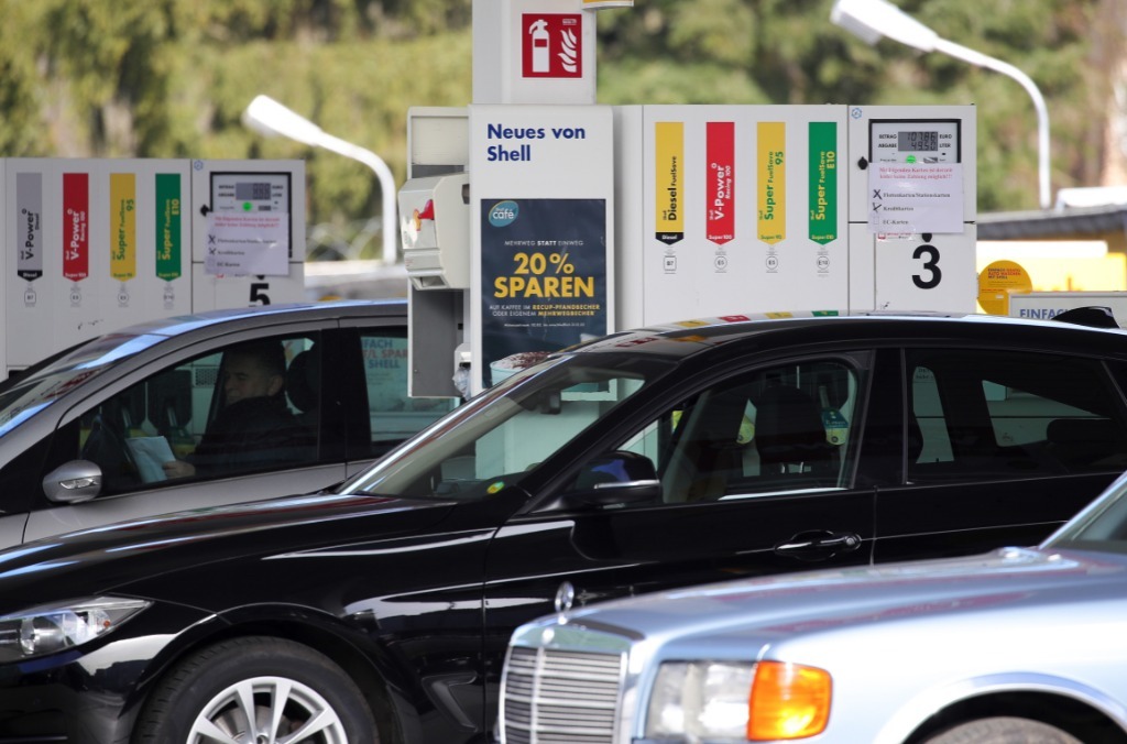 3月18日,人們在德國法蘭克福一處加油站為汽車加油。新華社發(fā)(阿曼多·巴巴尼攝)