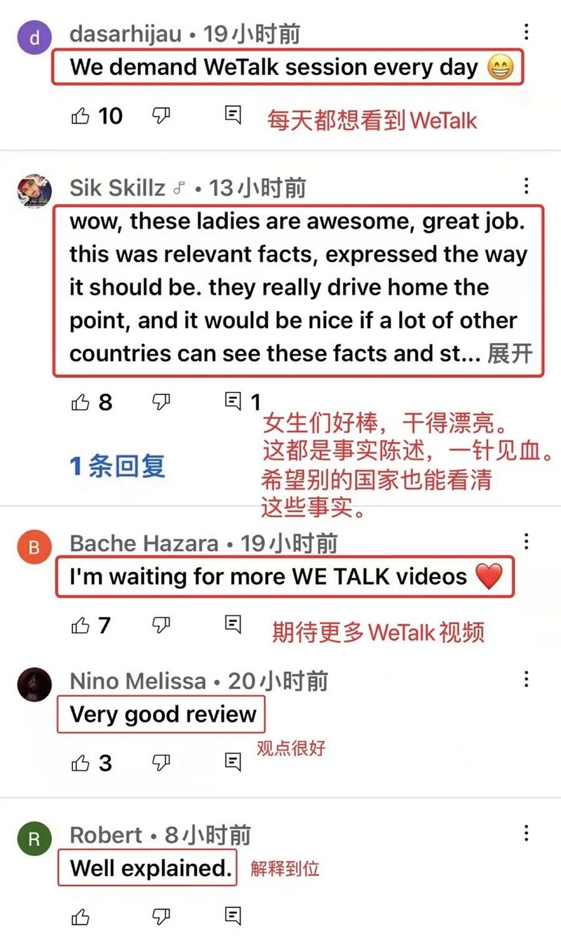 海外網(wǎng)友表示,主持人的點(diǎn)評“一針見血,如果更多國家能夠看到這些事實(shí)并開始做出更好的決定,就太好了?!边€有人直呼“解釋到位,觀點(diǎn)睿智”。