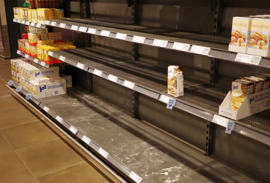 這是4月27日在德國柏林一家超市拍攝的面粉貨架。德國市場研究機構捷孚凱27日發(fā)布的報告顯示,受俄烏沖突及高通脹影響,5月德國消費者信心先行指數(shù)降至負26.5點,創(chuàng)歷史新低。新華社記者任鵬飛攝