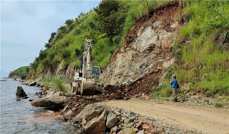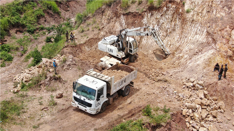 巴拉卡分遣點(diǎn)執(zhí)行道路搶修任務(wù)。圖片由中國(guó)第25批維和工兵分隊(duì)提供 |