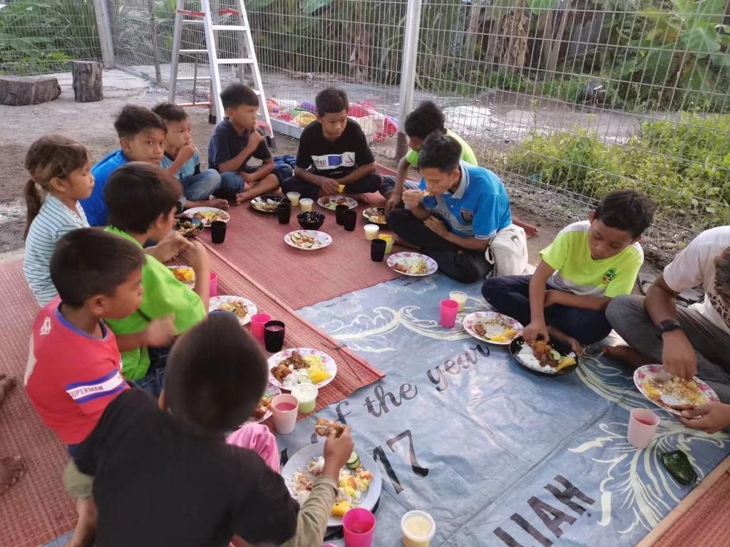 4月12日,在馬來西亞沙巴州仙本那,“婆羅洲團結組織”的學生志愿者為受火災影響的兒童發(fā)放食物。(受訪者提供)