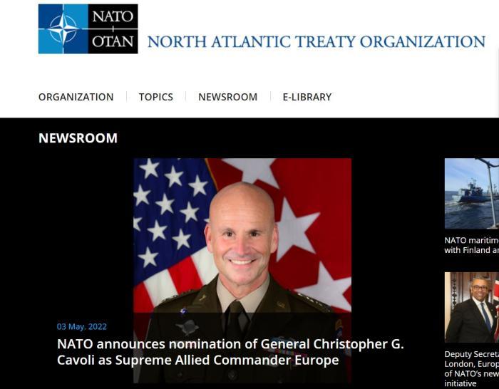 北約高調(diào)“換將”。圖片來源:北約官網(wǎng)首頁。