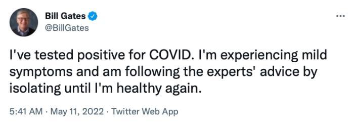 據(jù)報道,現(xiàn)年66歲的蓋茨在社交媒體上發(fā)文稱,“他出現(xiàn)了輕微的癥狀,正‘聽從專家的建議進(jìn)行隔離’,直到恢復(fù)健康為止?!?/p>