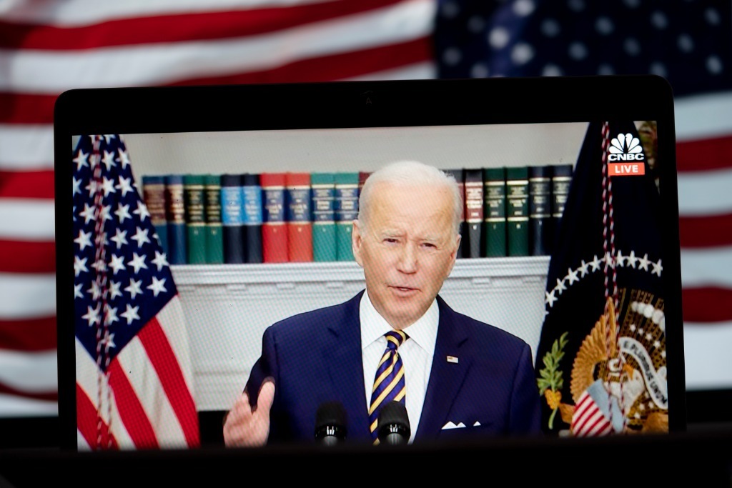 3月8日拍攝的視頻畫面顯示,美國總統(tǒng)拜登在華盛頓白宮發(fā)表講話。新華社記者劉杰攝