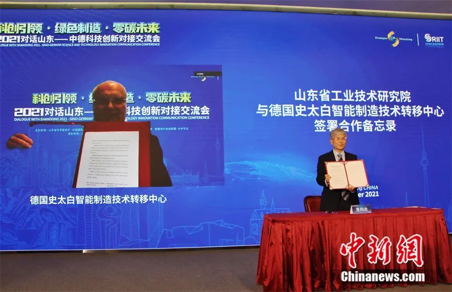 山東省一家技術(shù)研究院與德國一家技術(shù)轉(zhuǎn)移中心在線上簽署合作備忘錄。中新社記者趙曉 攝