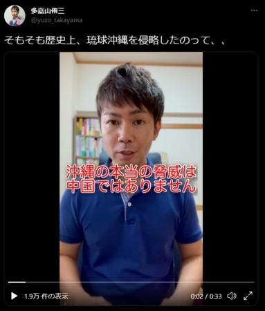 【環(huán)球時(shí)報(bào)-環(huán)球網(wǎng)報(bào)道 記者 邢曉婧】“沖繩真正的威脅不是中國(guó)!歷史上侵略過(guò)琉球(即沖繩,下同)的不是中國(guó),而是日本和美國(guó)!”沖繩政治活動(dòng)家多嘉山侑三日前在社交媒體上發(fā)布的一條視頻引起廣泛關(guān)注(如下圖),有網(wǎng)絡(luò)右翼誹謗他“收了中國(guó)的錢(qián)”,也有不少日本民眾表示通過(guò)視頻了解了事實(shí)真相。15日,多嘉山侑三在接受《環(huán)球時(shí)報(bào)》記者獨(dú)家采訪時(shí)表示,看到社交媒體上充斥著越來(lái)越多的不實(shí)信息,他愿意用自己的真實(shí)姓名,負(fù)責(zé)任地介紹沖繩真正的歷史。他同時(shí)表示,沖繩民眾的人權(quán)長(zhǎng)年遭到踐踏,現(xiàn)如今越來(lái)越多沖繩民眾的意識(shí)開(kāi)始覺(jué)醒,“琉球獨(dú)立”成為一種必然。