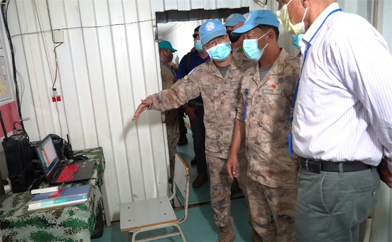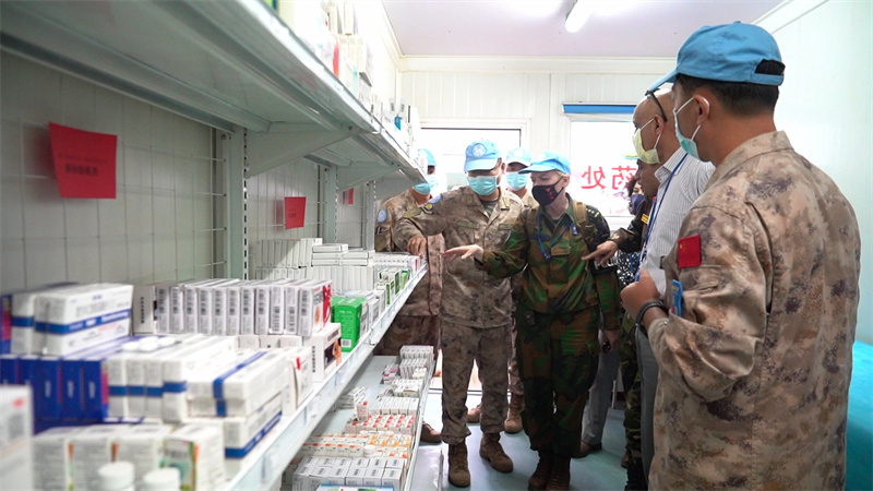 代表團評估維和步兵營一級醫(yī)院醫(yī)療水平。維和步兵營供圖 |