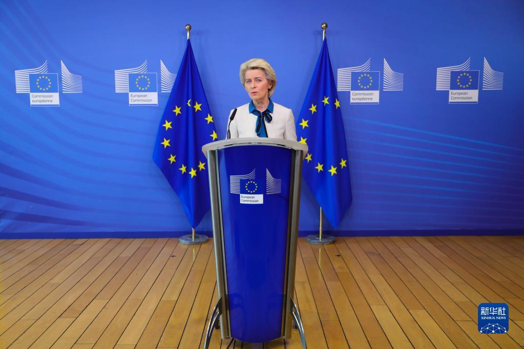 5月18日,歐盟委員會主席馮德萊恩在比利時(shí)布魯塞爾的歐盟委員會總部發(fā)言。新華社記者 鄭煥松 攝