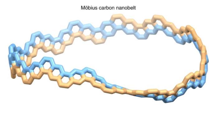 據(jù)介紹,這一“莫比烏斯碳納米帶”的大小為3.5納米(1納米為十億分之一米),扭曲的位置可以在整個分子上靈活移動,當紫外線照射時會發(fā)出熒光。據(jù)稱,它可能具有迄今為止的碳物質所沒有的新特性。