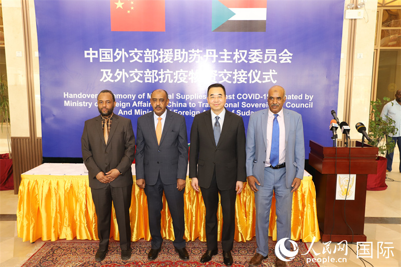 人民網(wǎng)喀土穆5月20日電 (記者蘇航)19日,中國(guó)外交部援助蘇丹主權(quán)委員會(huì)及外交部抗疫物資交接儀式在蘇丹首都喀土穆友誼廳舉行。中國(guó)駐蘇丹大使馬新民、蘇丹外長(zhǎng)阿里·薩迪克、聯(lián)邦衛(wèi)生部長(zhǎng)海薩姆出席活動(dòng)并簽署交接證書。