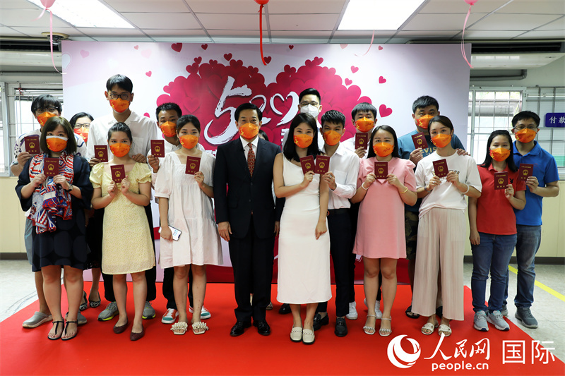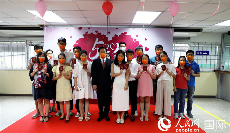 ”520”當(dāng)天在駐泰使館領(lǐng)證結(jié)婚的新人們。人民網(wǎng)記者 趙益普攝 |