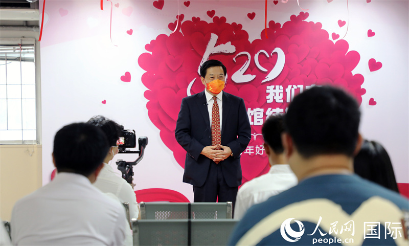 人民網(wǎng)曼谷5月20日電 (記者趙益普)彩色氣球、紅色地毯以及“520”結(jié)婚紀(jì)念墻……在5月20日這個(gè)浪漫的日子里,中國(guó)駐泰使館領(lǐng)事證件大廳布置一新,處處洋溢著吉祥喜慶的氛圍。受新冠疫情影響,一些在泰中國(guó)同胞回國(guó)困難,結(jié)婚領(lǐng)證成了一件不大不小的“麻煩事“。為落實(shí)外交為民理念,解決同胞們的實(shí)際困難,中國(guó)駐泰使館專門(mén)增加5月20日當(dāng)天結(jié)婚登記預(yù)約名額,并對(duì)證件大廳進(jìn)行專門(mén)布置,讓新人們?cè)诋悋?guó)他鄉(xiāng)結(jié)婚也能感受到祖國(guó)的關(guān)懷。