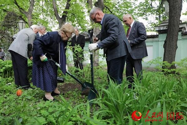 在“種植友誼丁香花”環(huán)節(jié),俄中友協(xié)第一副主席、中國“友誼勛章”獲得者庫利科娃女士親手栽種下一株友誼之花。她說:“今天,整個世界正在經歷疫情和復雜的全球政治局勢。但我相信,俄中兩國青年在未來將延續(xù)和深化友誼。希望今天在這里種下的丁香花成為兩國友誼的象征,我們將攜手共克時艱?!?/p>