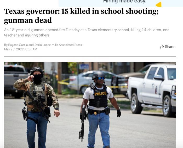 阿博特還透露,槍手名叫拉莫斯(Salvador Ramos),18歲,是一名當(dāng)?shù)貙W(xué)生,也已死亡。