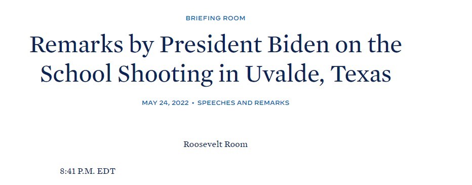 當地時間5月24日,美國總統拜登對得州學校槍擊事件發(fā)表聲明。圖片來源:白宮網站截圖
