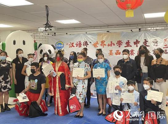 圖為參加墨西哥城“漢語(yǔ)橋”中文秀決賽的小學(xué)生合影。人民網(wǎng)記者 彭敏攝 |