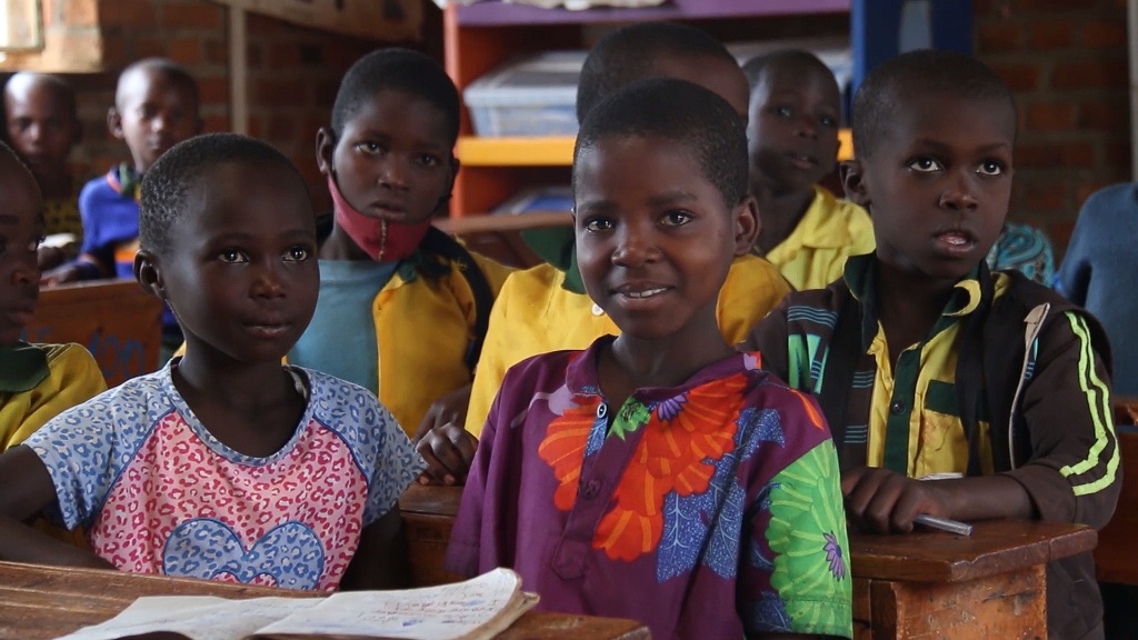 盧旺達北方省吉康比地區(qū)一所學校內(nèi),孩子們正在上課。(視頻截圖)