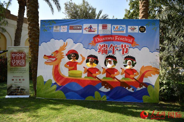 6月3日,埃及青年在端午節(jié)活動(dòng)展板留影。人民網(wǎng)記者 李涼攝 |
