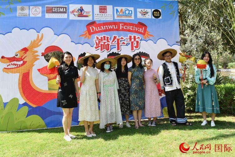 6月3日,埃及中國(guó)學(xué)聯(lián)代表身著傳統(tǒng)服飾參加端午節(jié)活動(dòng)。人民網(wǎng)記者 李涼攝 |