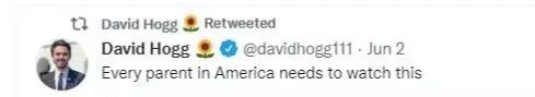 近日,“為我們的生命游行”創(chuàng)始人之一戴維·霍格又重新在網(wǎng)上發(fā)布了該視頻。用霍格的話說,美國(guó)每個(gè)家長(zhǎng)都應(yīng)該看一下這段視頻。