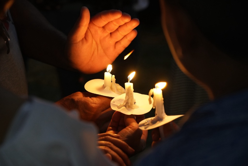 5月29日,在美國得克薩斯州南部尤瓦爾迪市的城市廣場,市民為槍擊事件遇害者守夜。美國得克薩斯州南部尤瓦爾迪市5月24日發(fā)生惡性校園槍擊事件,造成至少19名兒童和2名教師死亡。這是美國近十年來遇害人數(shù)最多的一起校園槍擊事件。新華社記者吳曉凌攝