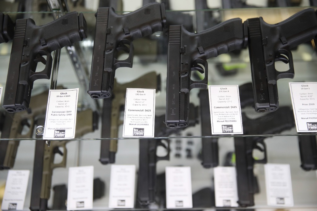 這是2017年10月4日在美國拉斯維加斯的“新前線”槍械商店拍攝的待售槍支。新華社記者王迎攝