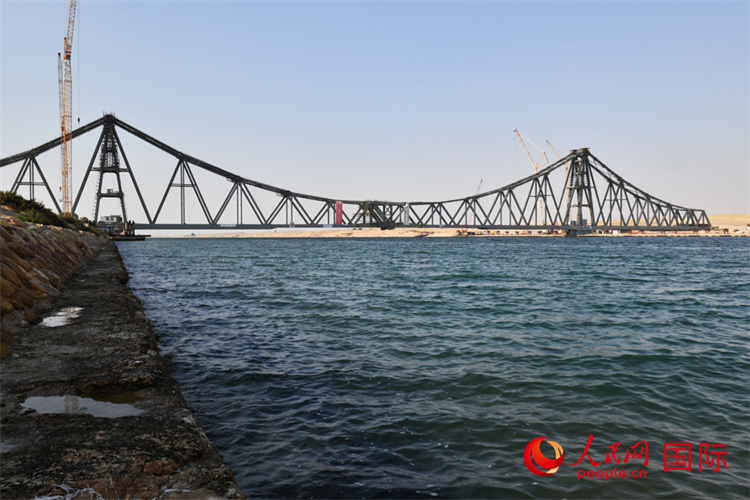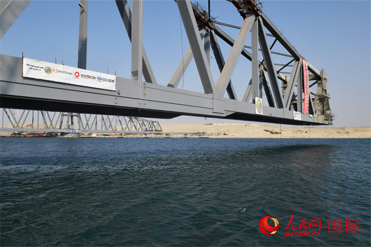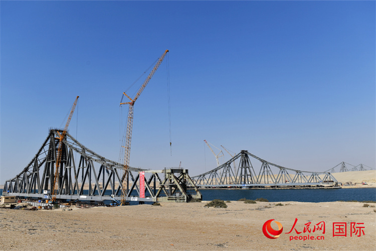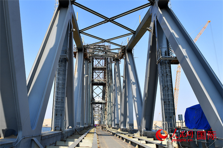 6月5日,埃及蘇伊士運河鐵路橋雙翼對接。人民網(wǎng)記者 李涼攝 |